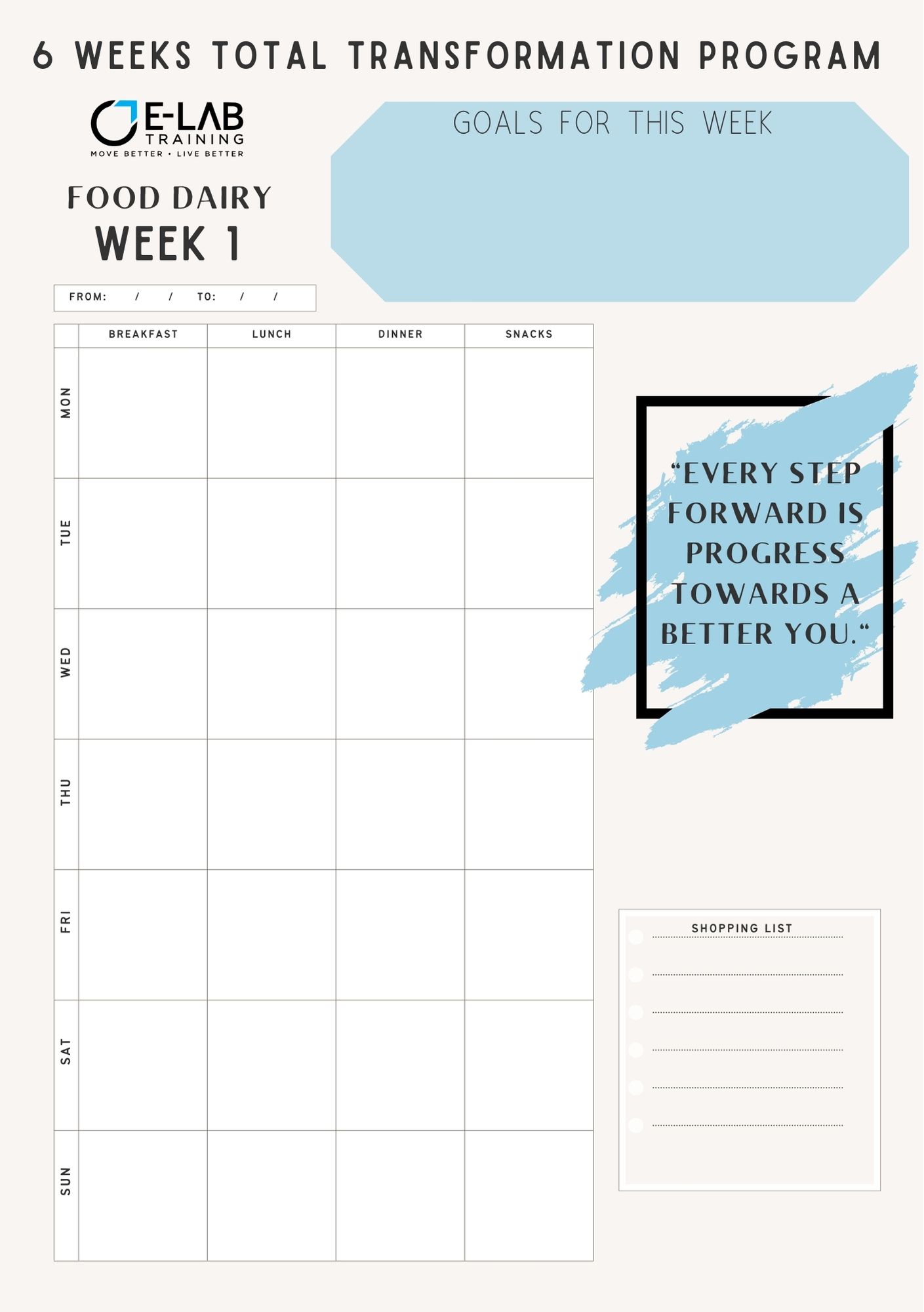 3. Diet and supplementation – read the nutrition booklets and set up your eating and supplementation plan. Utilise food diaries only if you feel it necessary.