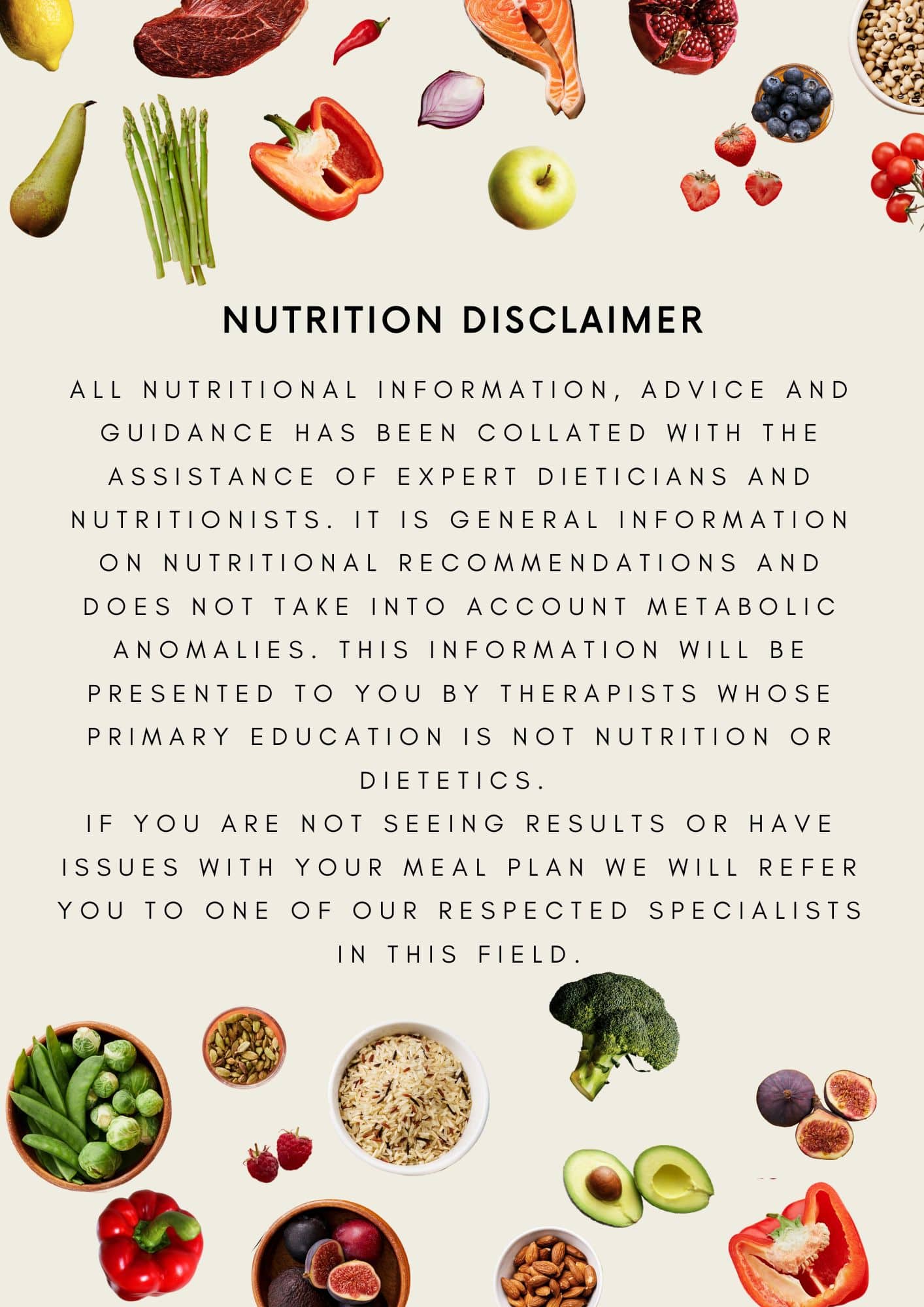 1. Nutritious eating plan – this is the hallmark of getting your body into a healthy state and weight. We strongly advise that you read, understand and plan using the nutrition guide provided. This information has been written by industry experts and should give you enough information to help you plan your new habits.